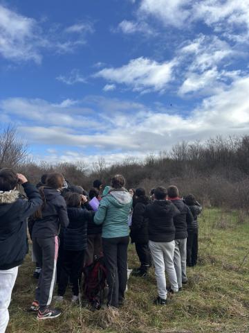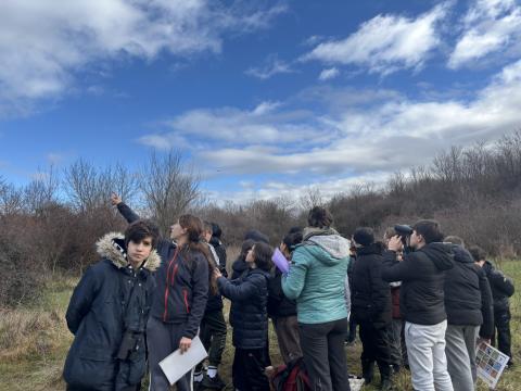 Impliqués dans un projet intitulé "Piafs de ma rue", les élèves ont pour mission de recenser les espèces d'oiseaux à proximité du collège. Cette intervention leur a permis d'apprendre à décrire et identifier des oiseaux à l'aide de jumelles afin de compléter leur inventaire, mais aussi à en apprendre avantage sur ces animaux qui les entourent au quotidien (chant, migration, vol, caractères communs, ...).La météo annoncée orageuse a finalement été clémente et de nombreuses espèces ont pu être observées et écoutées entre le collège et l'Espace Naturel Sensible des Couleures: mésange charbonnière, mésange bleue, mésange à longue queue, pie, pigeon ramier, Geai des chênes, buse variable, goéland leucophée, merle, corneille noire, pie bavarde, pic épeiche, rouge-gorge, verdier d'Europe. Les cigognes, présentes quelques jours avant la sortie, n'ont pas été aperçues. Pour finir en beauté, la classe de 6E a même eu la chance de voir un chevreuil!