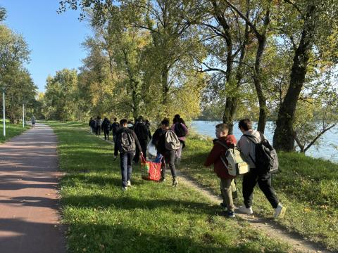 Nous avons fait une sortie pour le projet «Plastique à la loupe» . Le but était de ramasser tous les déchets sur un site au bord du Rhône.