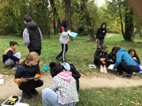 Plusieurs groupes font une activité "découvrir les animaux du sol ".