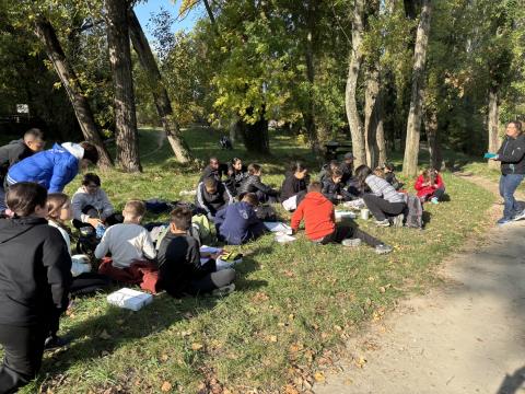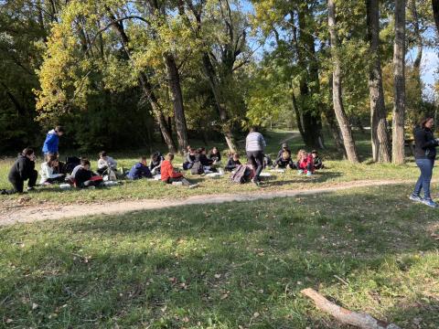 Tout d’abord, nous avons pris le bus puis nous avons marché jusqu’au site et posé nos affaires. Il y avait 6 groupes :
