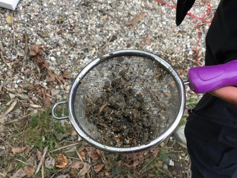 Enfin, les groupes 4, 5 et 6 se sont occupés des mésos et micro-déchets (les déchets de moins de 2,5 centimètres) à l’aide d’une pince, d’un bol, d’une passoire, d’une cuillère et de gants. En tous cas, nous nous sommes bien amusés.